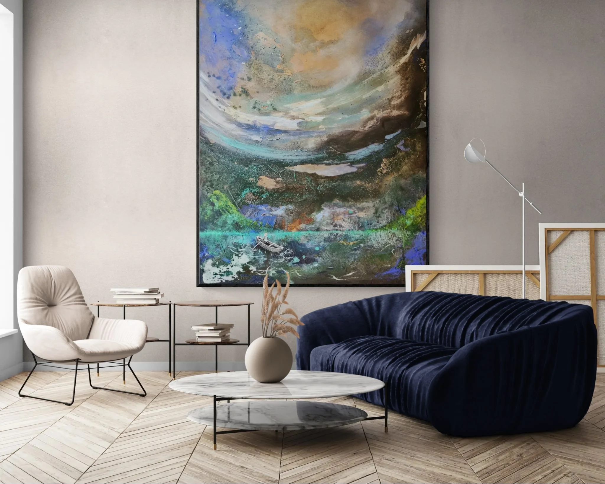 “Before I knew“ erzählt von Momenten, in denen sich eine Richtung zeigt, noch bevor wir sie bewusst wahrnehmen können. Zarte Farbschichten und eine ruhige, atmosphärische Landschaft erzeugen ein Gefühl von Übergang - zwischen Unsicherheit und Vertrauen. Die Farbwelt lässt Raum für eigenen Gedanken und macht das Werk zu einem stillen Begleiter im Raum. Es läd dazu ein, innezuhalten und sich daran zu erinnern, dass Entwicklung oft leise beginnt.