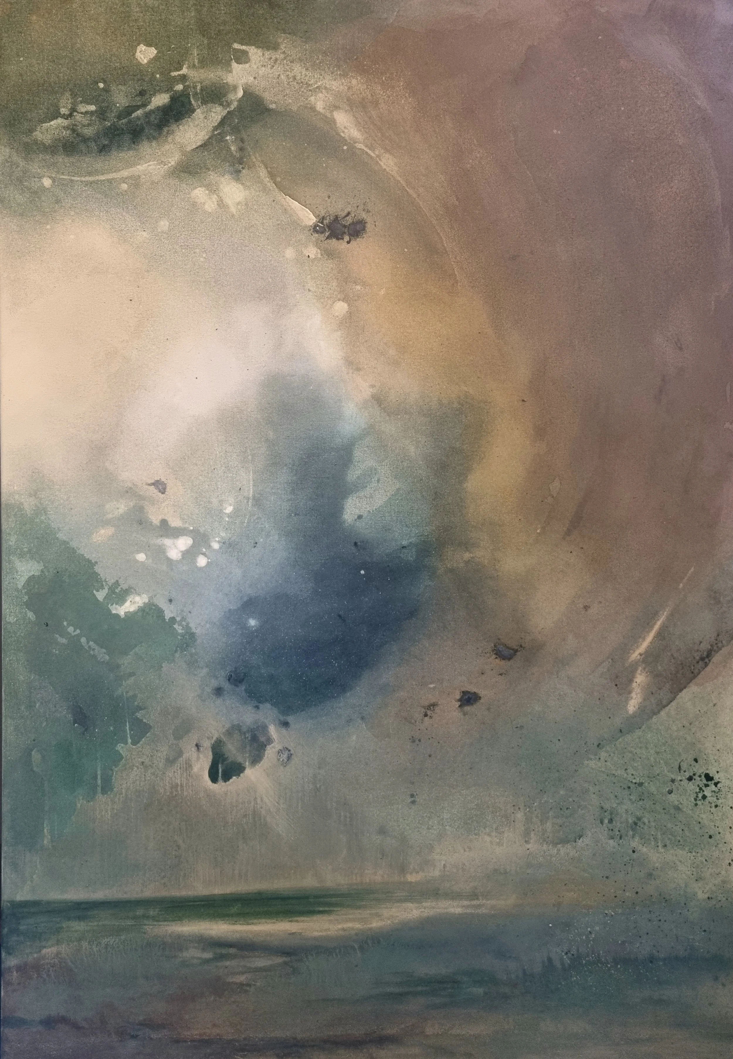Die erdigen Strukturen im unteren Bildbereich geben Halt und Tiefe, während die zarten Schichten darüber einen Übergang in etwas helleres, weicheres andeuten. Ein Werk, das an den Neubeginn erinnert, der in jedem Morgen steckt - ruhig, zärtlich und voller Hoffnung.